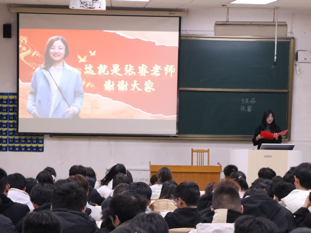 在候选人展示环节,邓远烨和刘祉含同学分别讲述了候选人于亚茹和张睿老师的个人事迹。展示内容涵盖教学成果、科研创新等多个方面,呈现了老师们深厚的专业素养和潜心育人的责任担当,让现场学生真切感受到了老师的热忱与坚守,进一步激发了对老师的敬爱与感激之情。