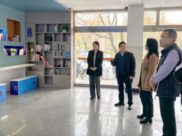 座谈会前,庞秋香现场参观了学院清廉书吧。(张福玲)