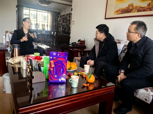 春临大地,节至情浓。2月9日上午,学院党委书记陈沙、院长杜庆洋、党委副书记亓鹏代表学院走访慰问老党员、老干部和高层次人才,向他们汇报学院2025年工作,为他们送上节日问候和新春祝福,并就学院“十五五”发展规划征求大家意见建议,共绘学院高质量发展新蓝图。