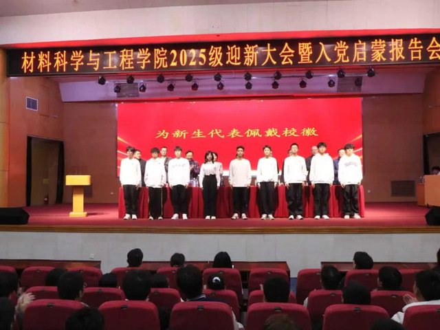 学院党委书记陈沙以《启航新材料 铸魂新未来》为题,围绕坚定信念、适应节奏、转变角色、奋发成才四个维度,为新生做了一场专题思政报告。