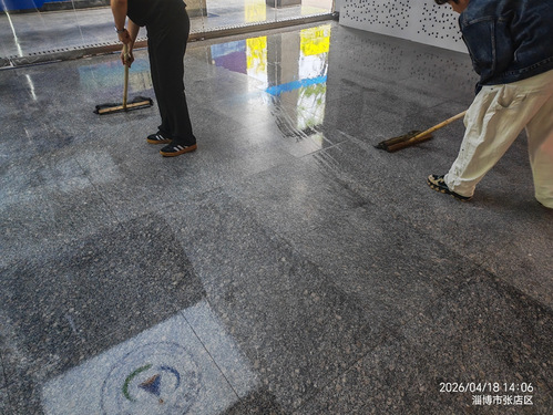 擦拭蒙尘的指引标识与公共台面
